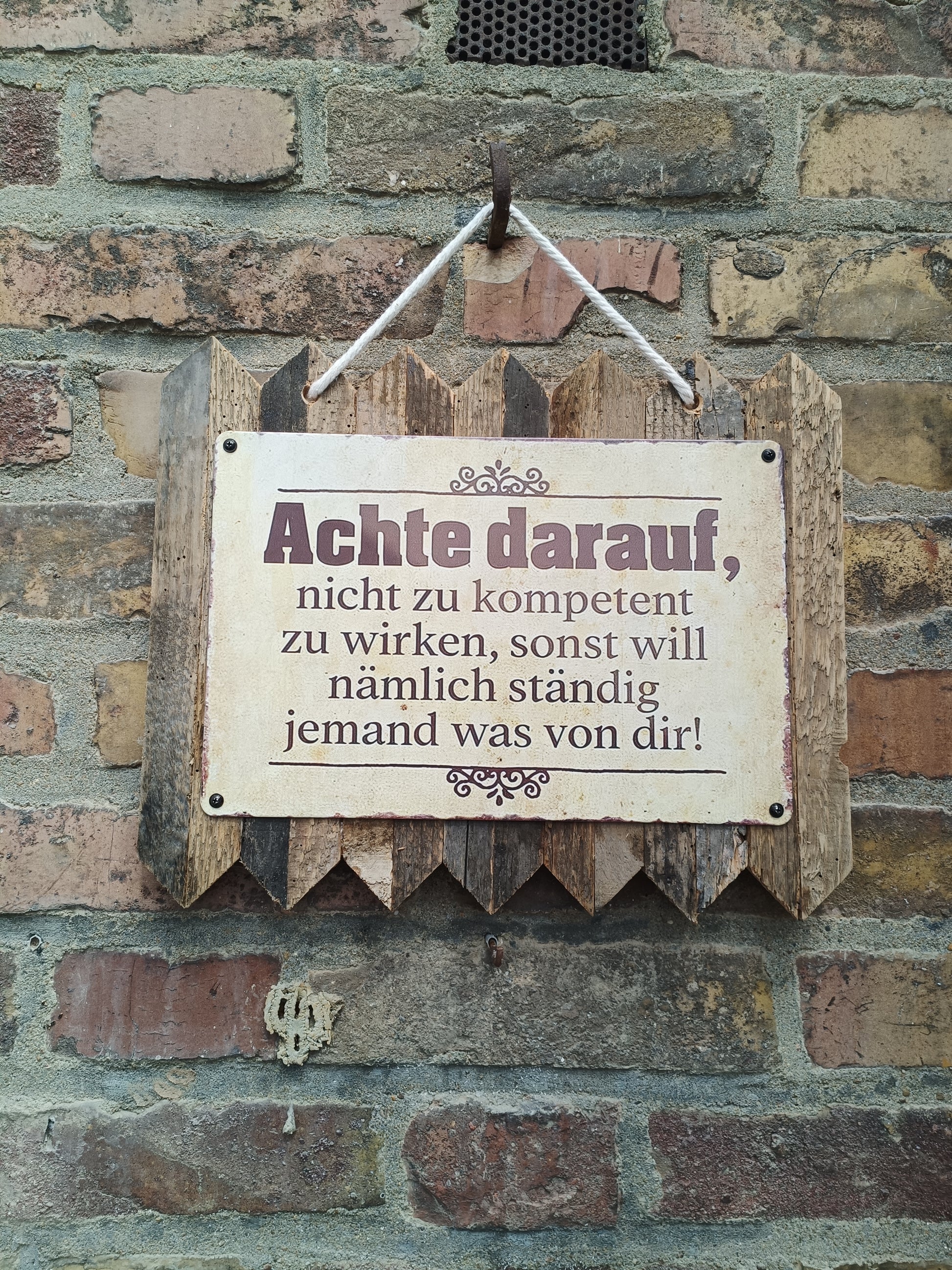 Blechschild " Achte drauf nicht zu Kompetent zu wirken " Handgefertigt auf Altholz