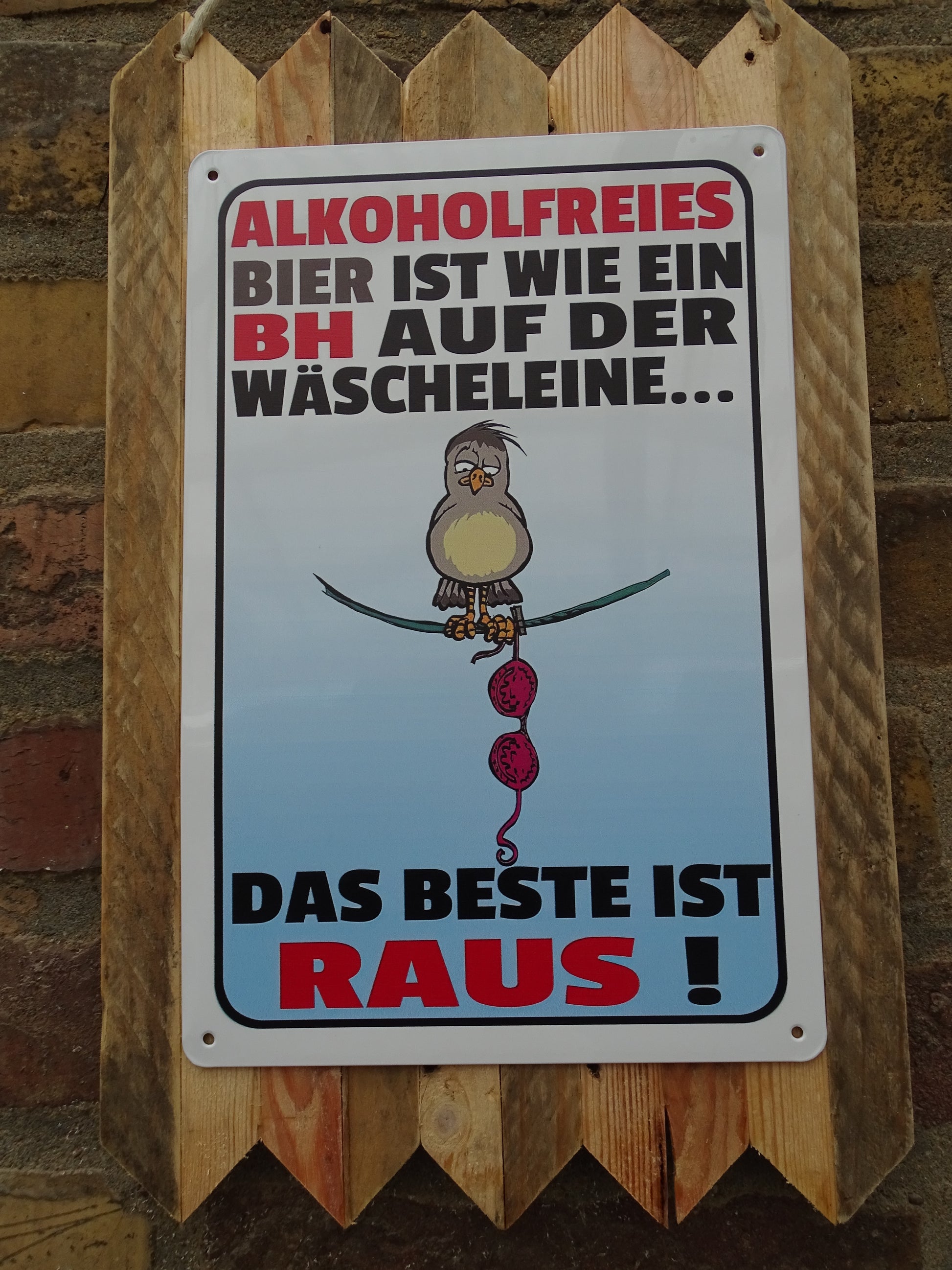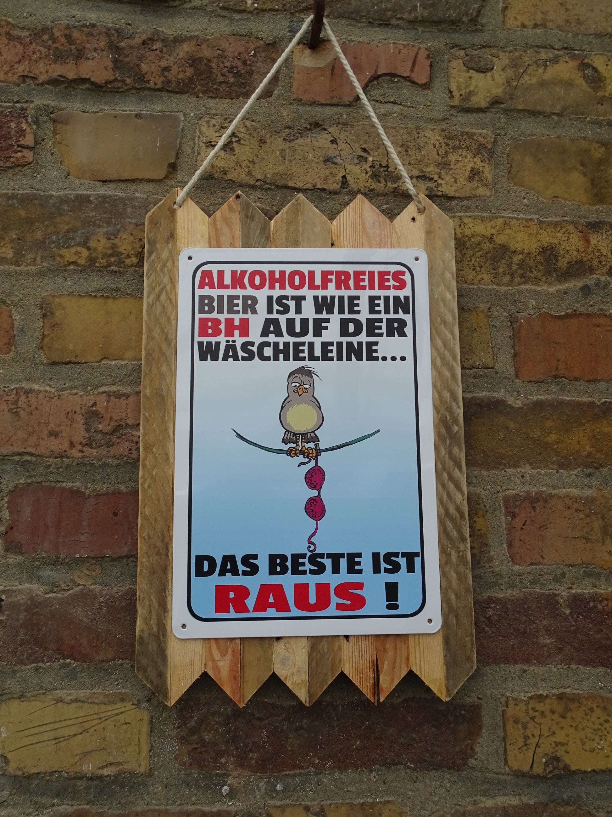 Blechschild " Alkoholfreies Bier ist wie ein BH " Handgefertigt auf Altholz