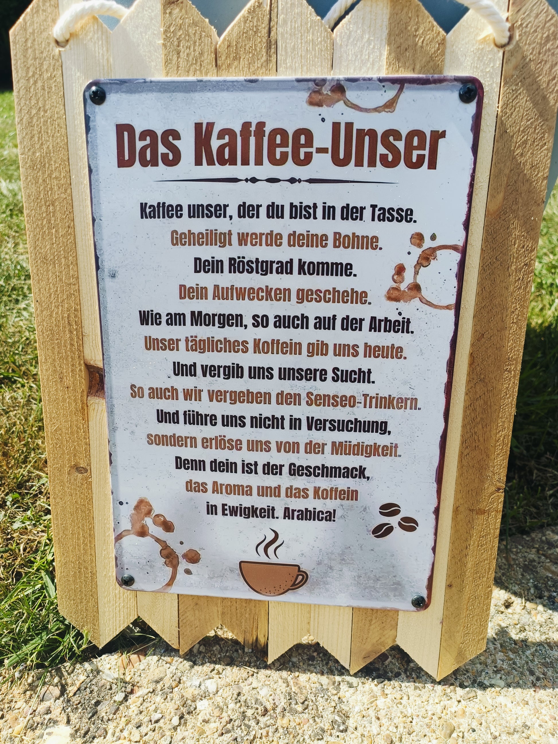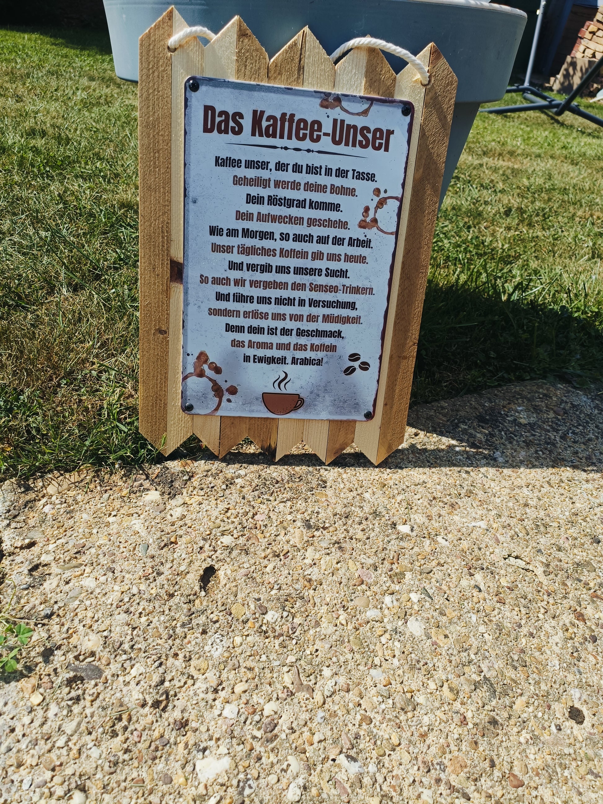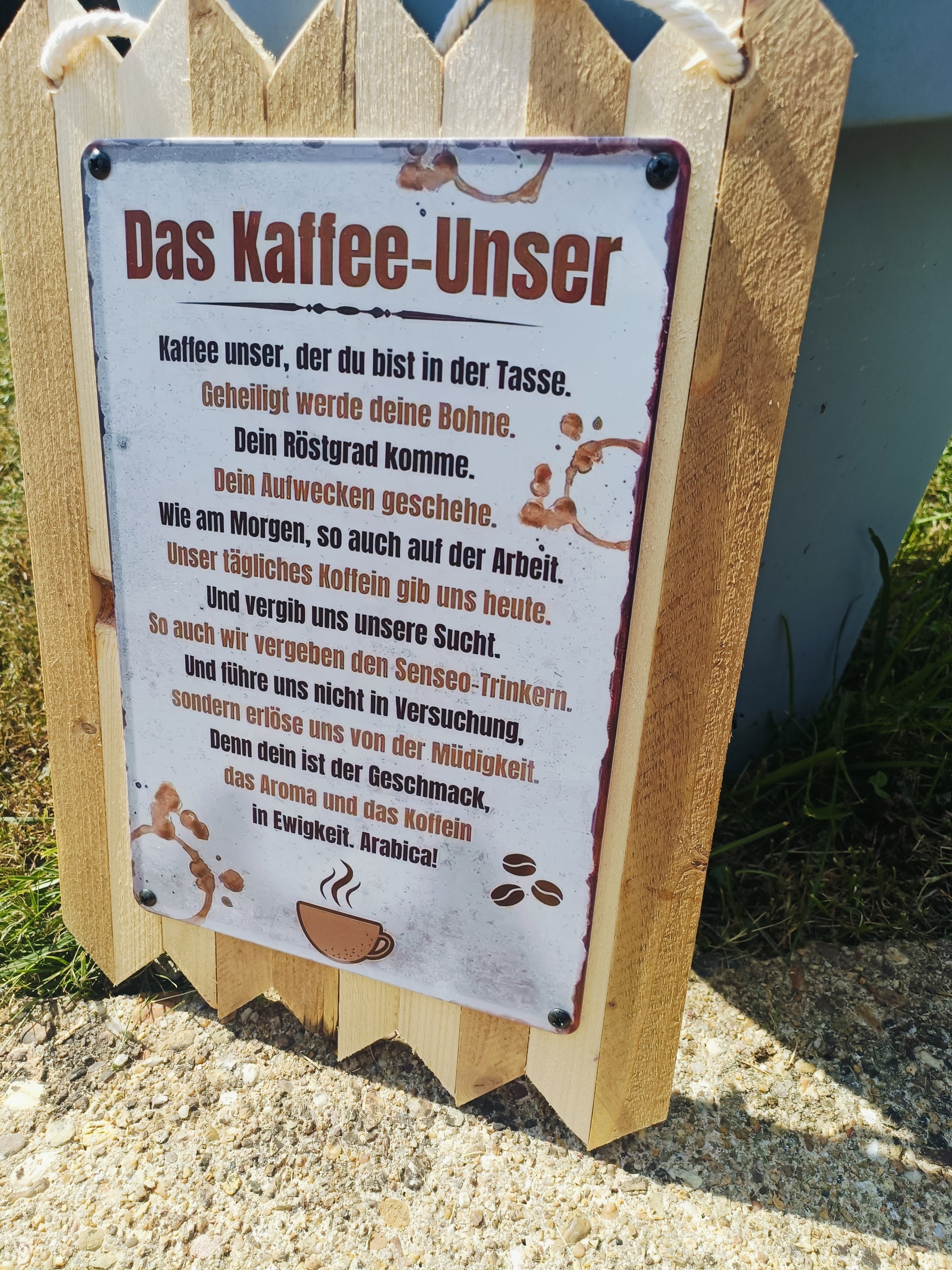 For all coffee lovers: This rustic metal sign on genuine reclaimed wood perfectly combines humor and enjoyment. The witty saying "Our Coffee" is a tribute to arguably the most important daily ritual—the morning cup of coffee. Whether in the kitchen, in the office, or as a gift, this sign is guaranteed to raise a smile.