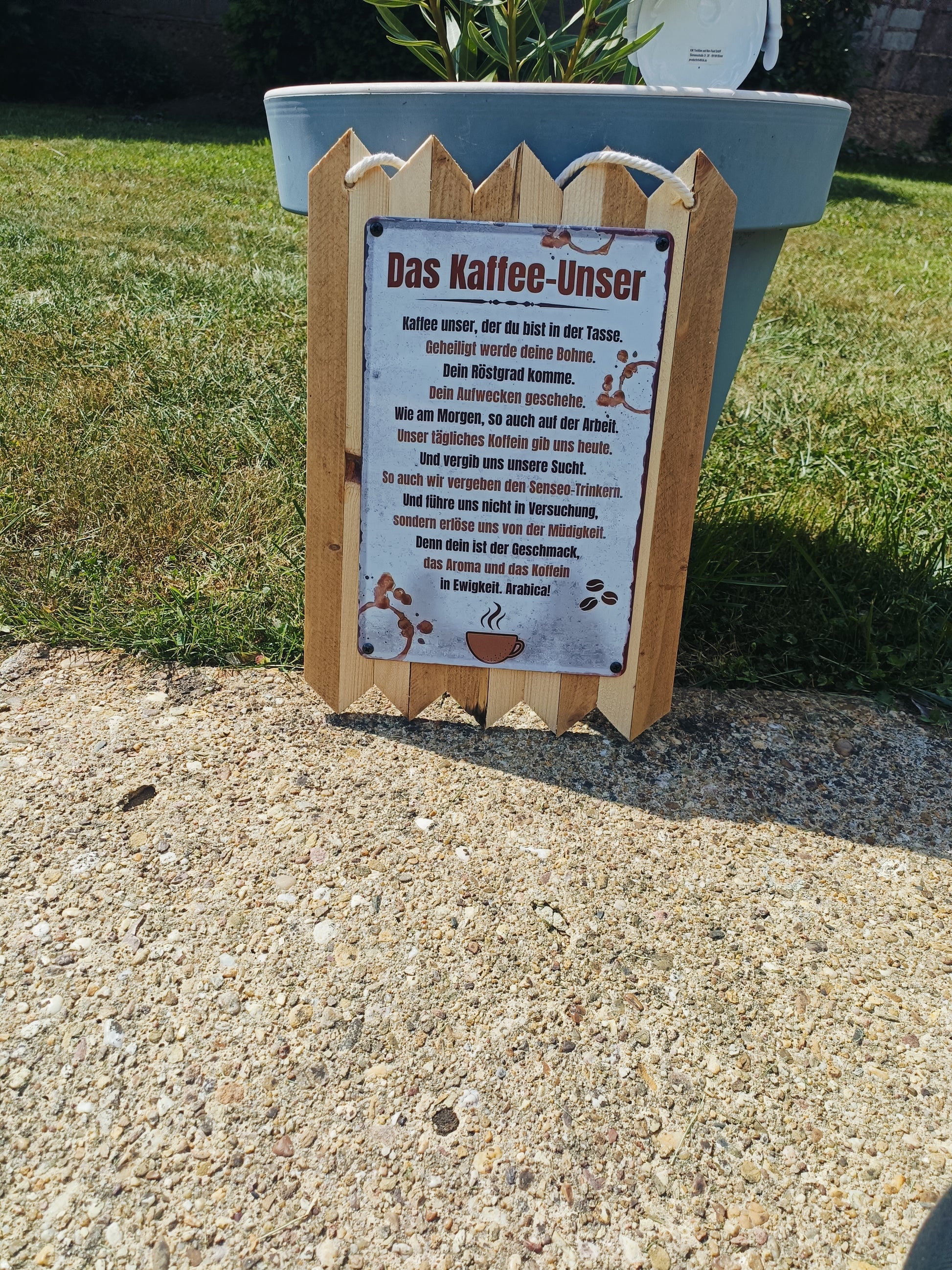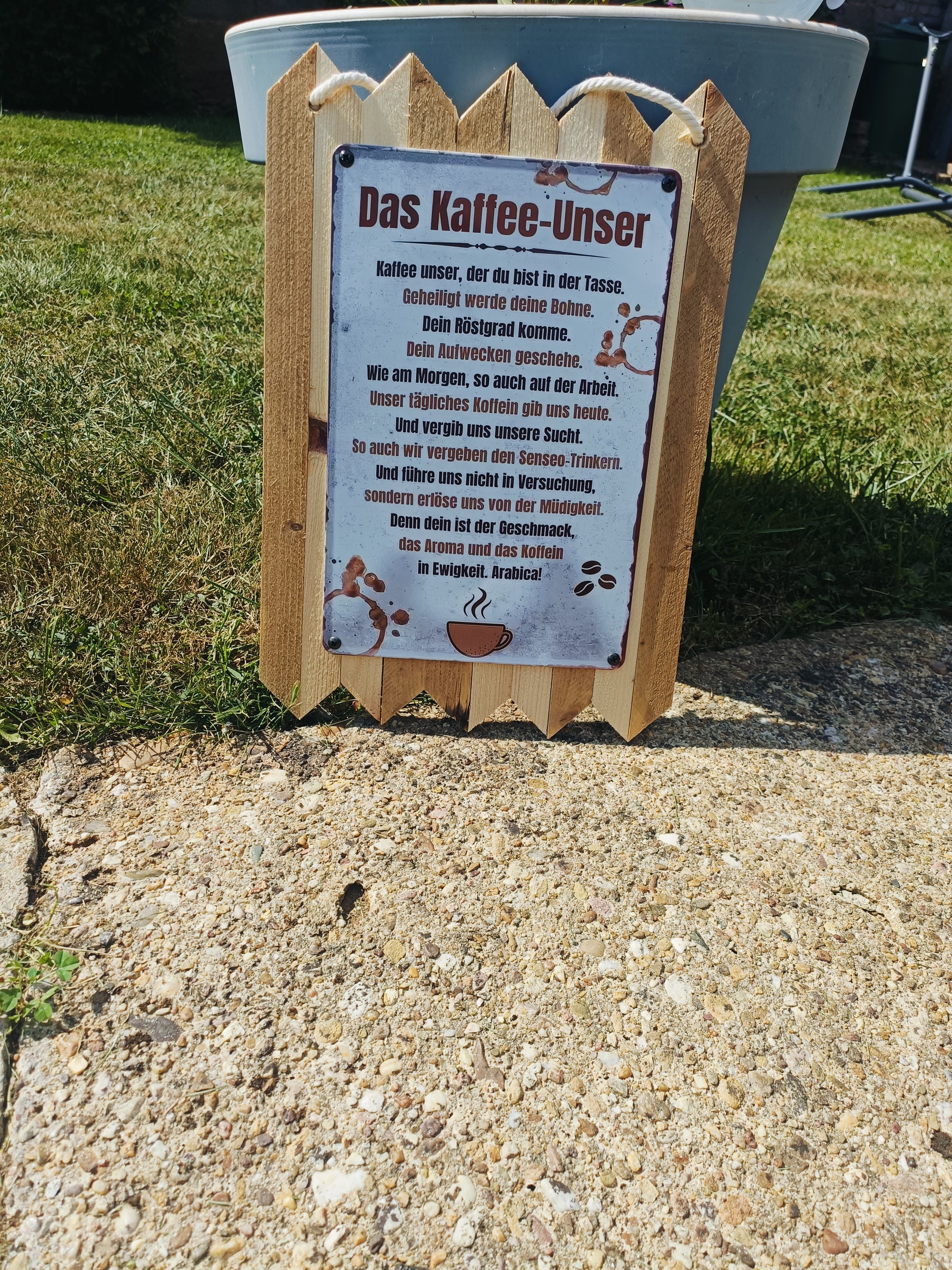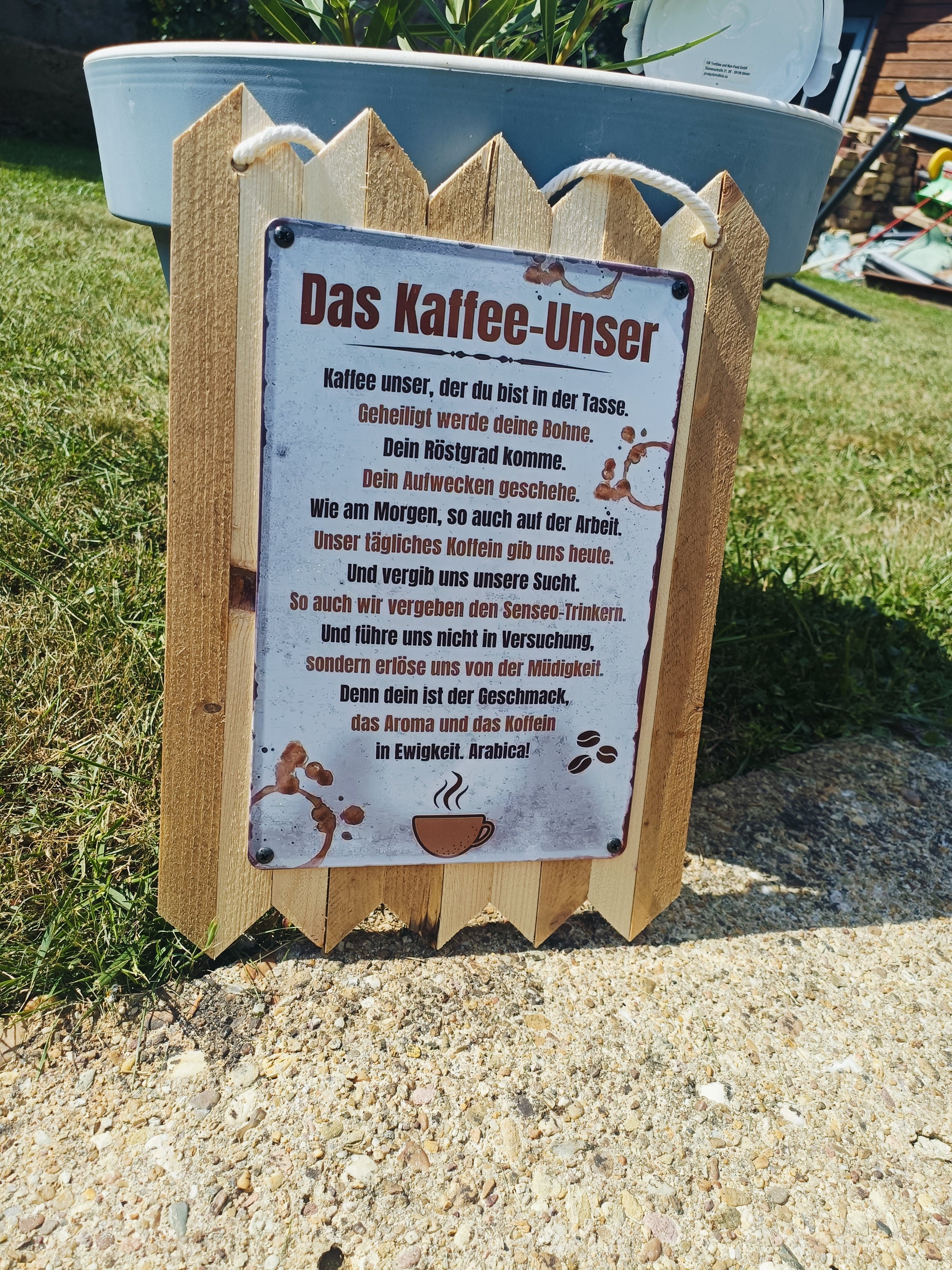 For all coffee lovers: This rustic metal sign on genuine reclaimed wood perfectly combines humor and enjoyment. The witty saying "Our Coffee" is a tribute to arguably the most important daily ritual—the morning cup of coffee. Whether in the kitchen, in the office, or as a gift, this sign is guaranteed to raise a smile.
