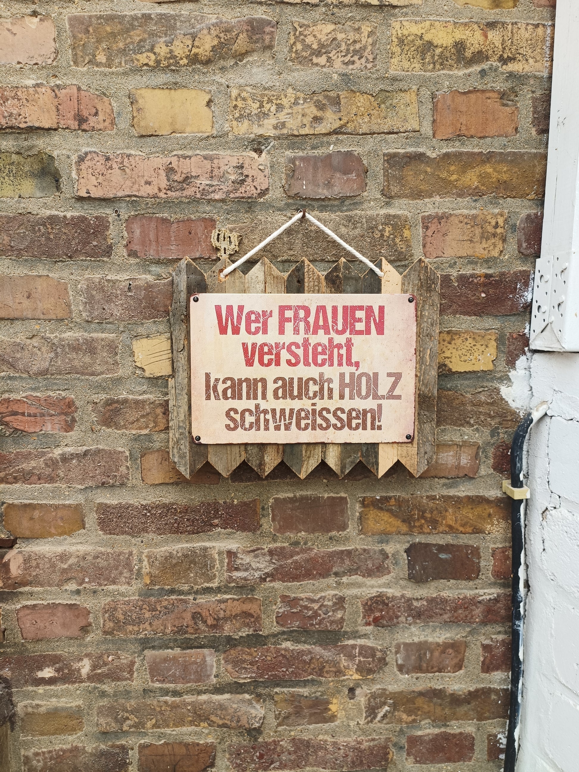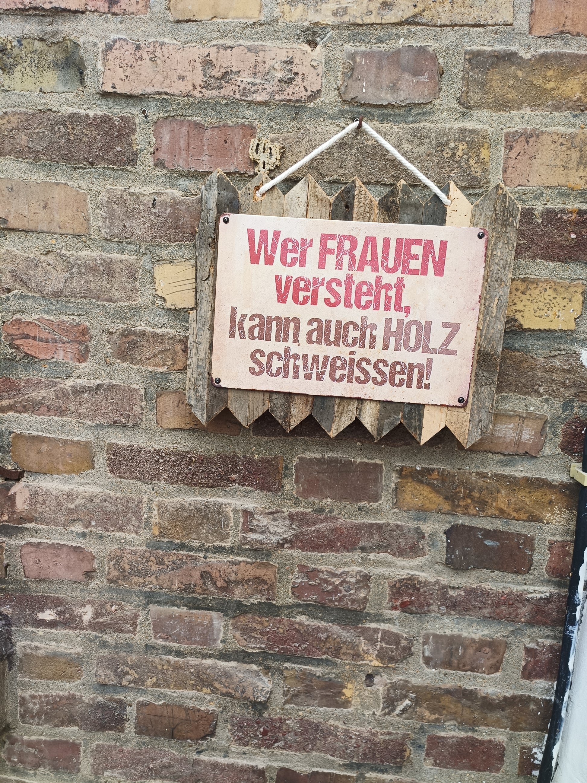 Metal sign “If you understand women, you can also weld wood, on old wood