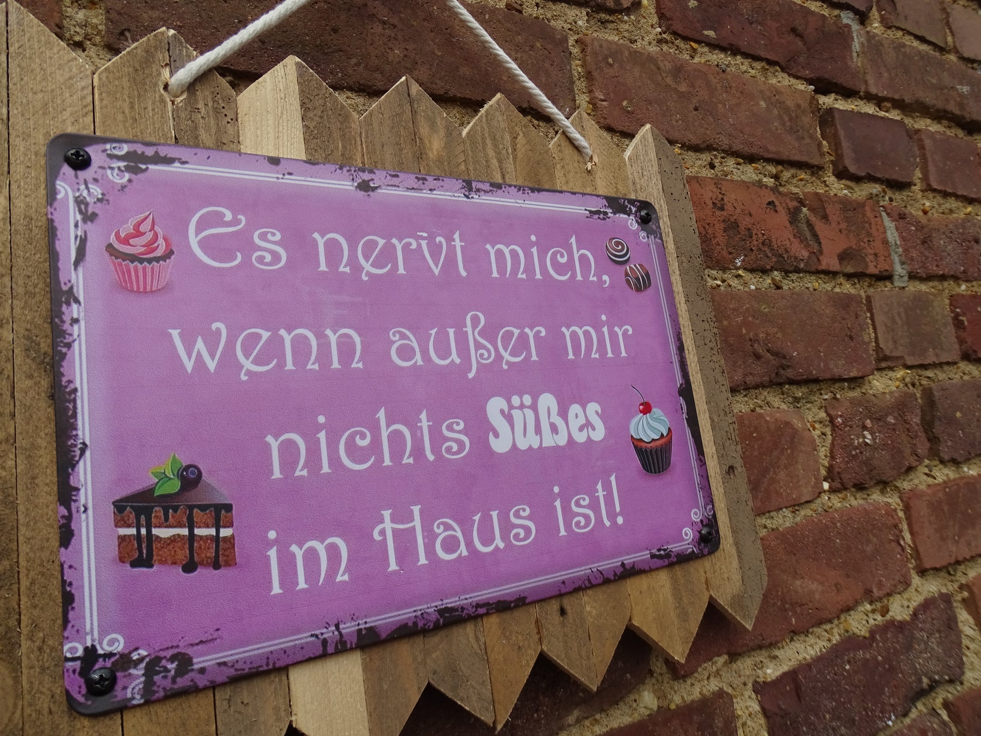Blechschild " Es nervt wenn außer mir nix süßes im Haus ist " Handgefertigt auf Altholz