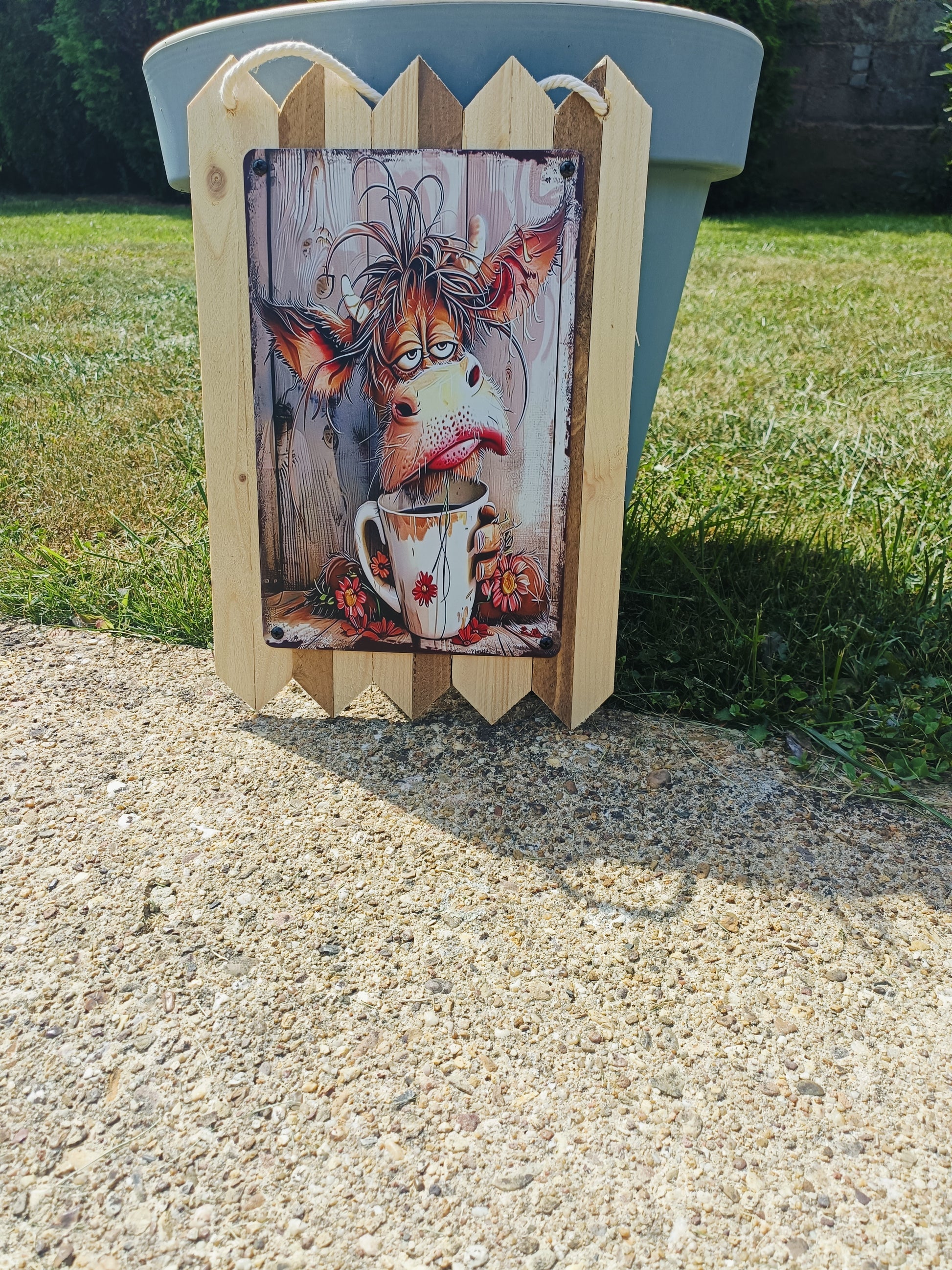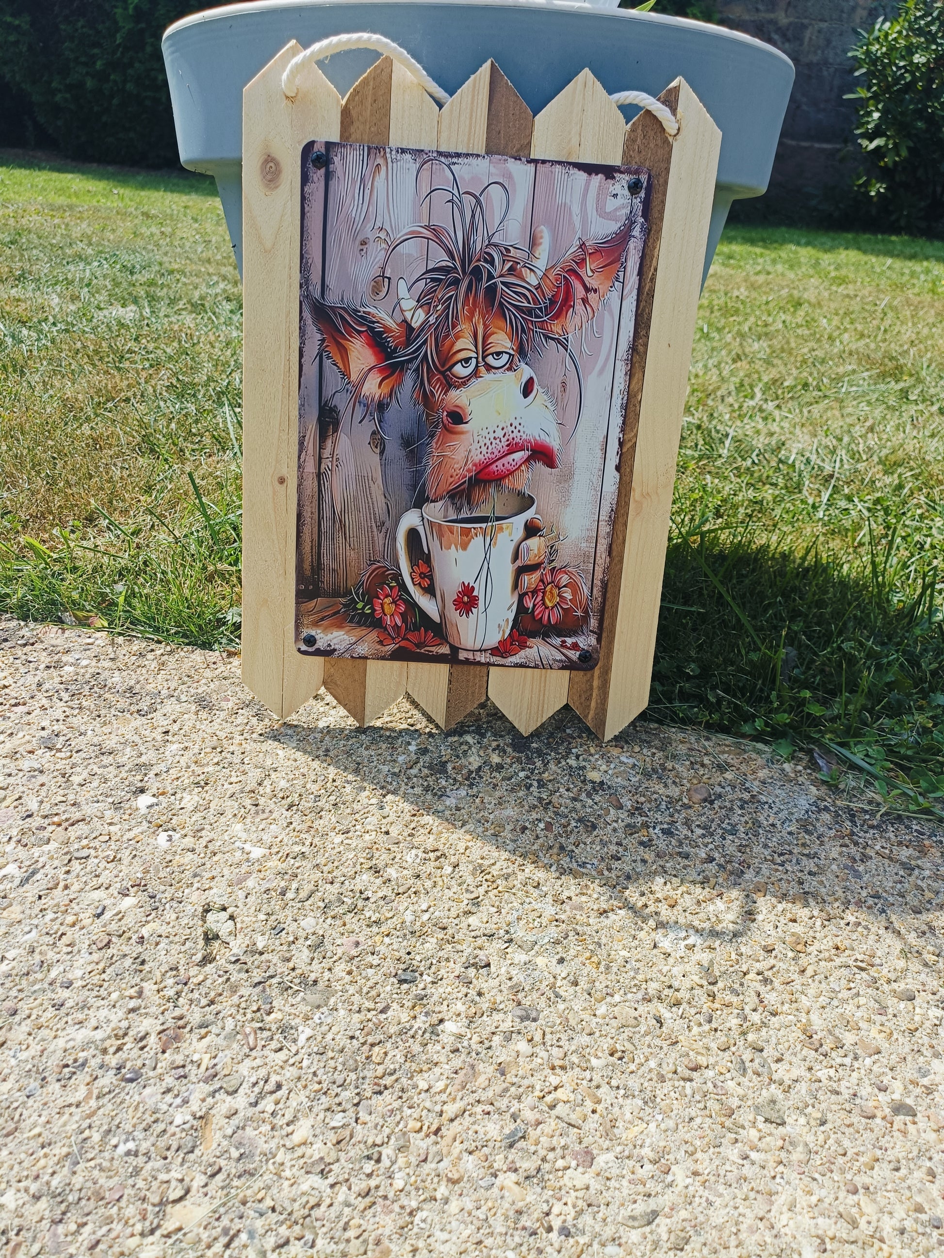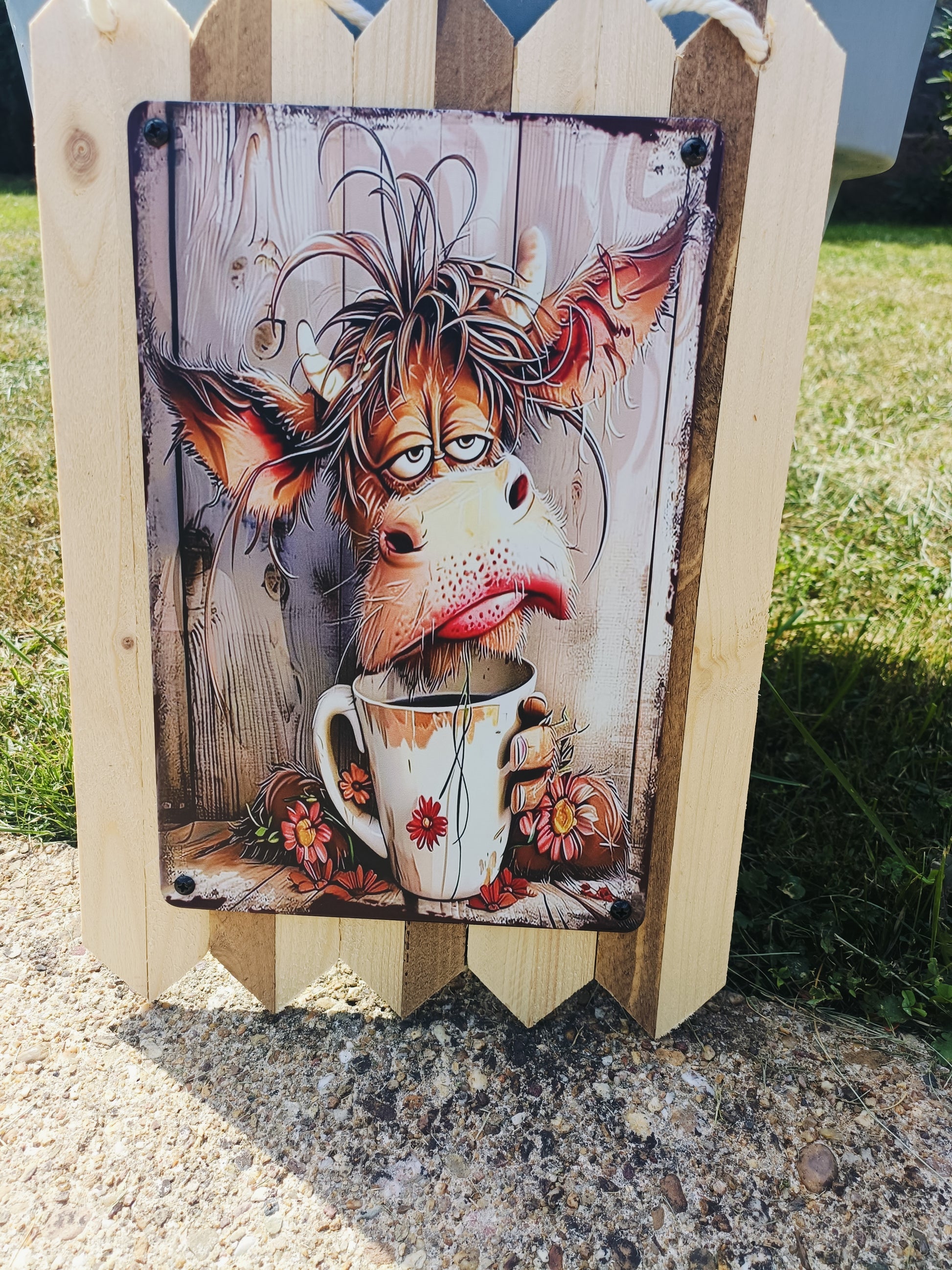 Blechschild " Kuh müde " nicht ansprechen bevor der Kaffee wirkt - Handgefertigte Küchen Deko auf Altholz