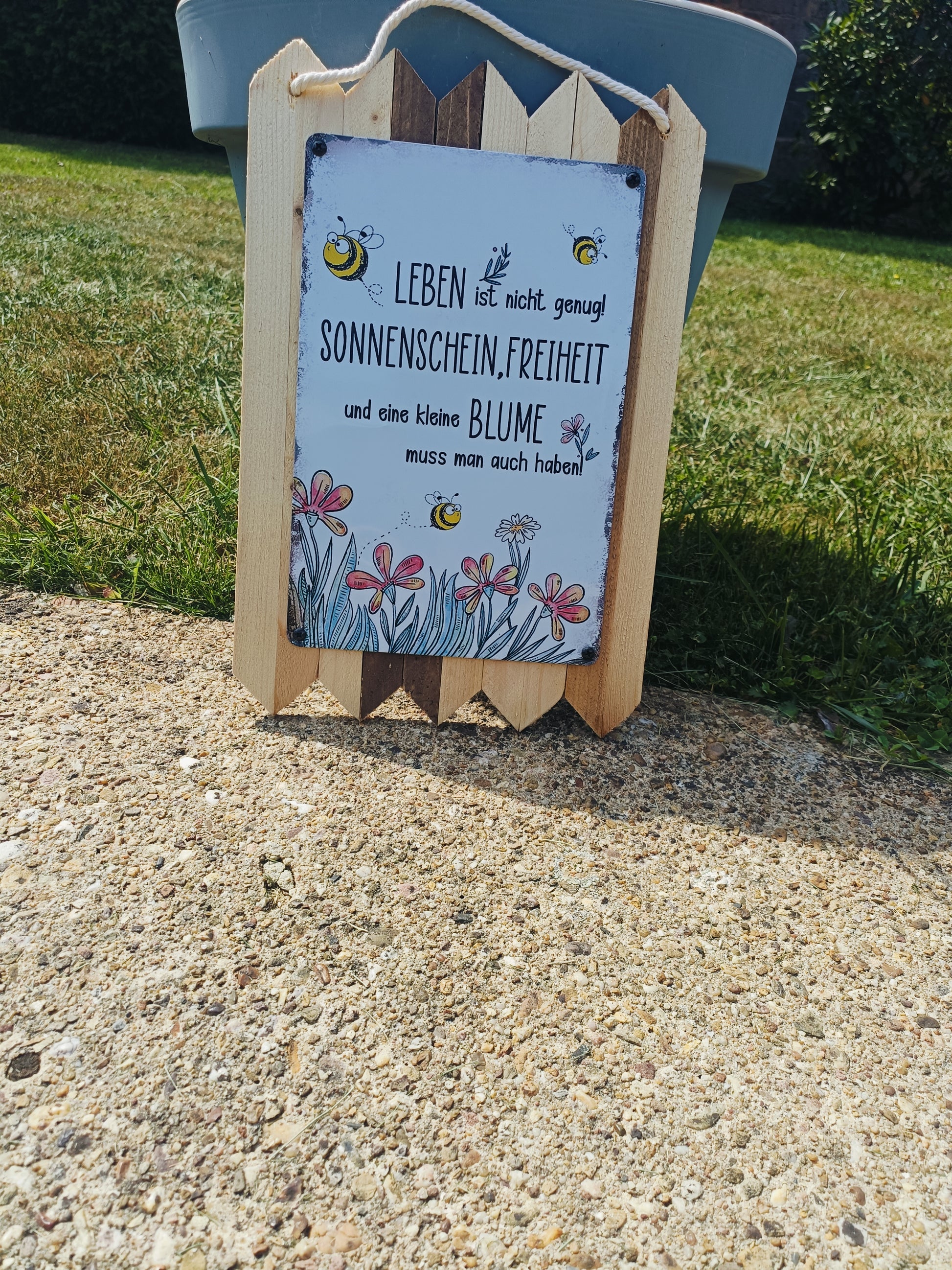 Blechschild " Leben ist nicht genug " Handgefertigt auf Altholz