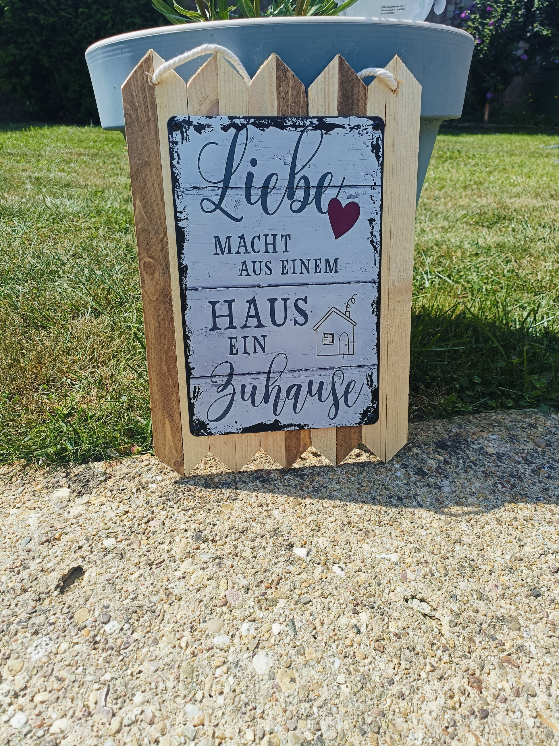 Blechschild " Liebe macht aus einem Haus erst.. " Handgefertigt auf Altholz