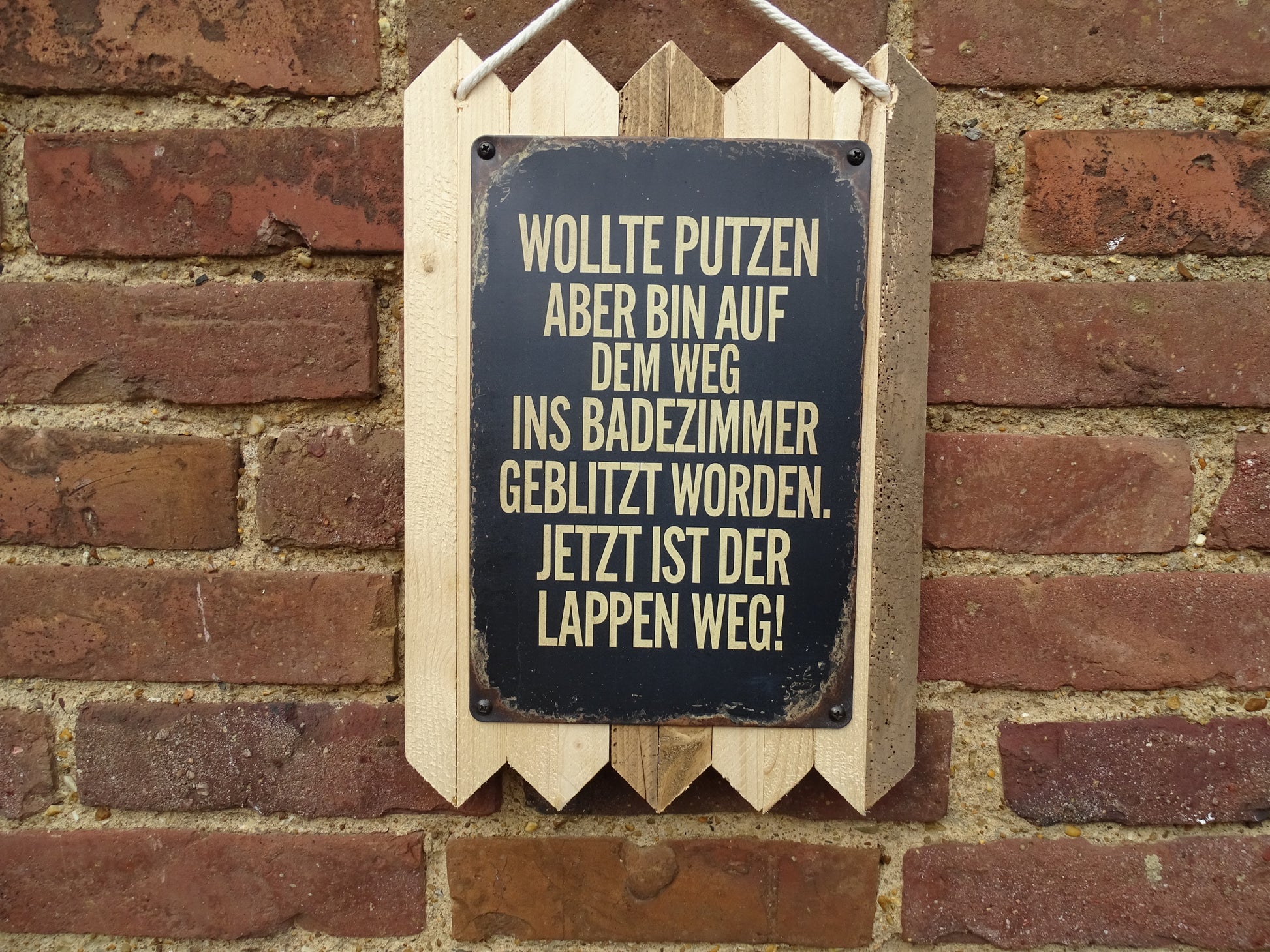 Blechschild " Wollte Putzen, aber bin auf dem Weg " Handgefertigt auf Altholz