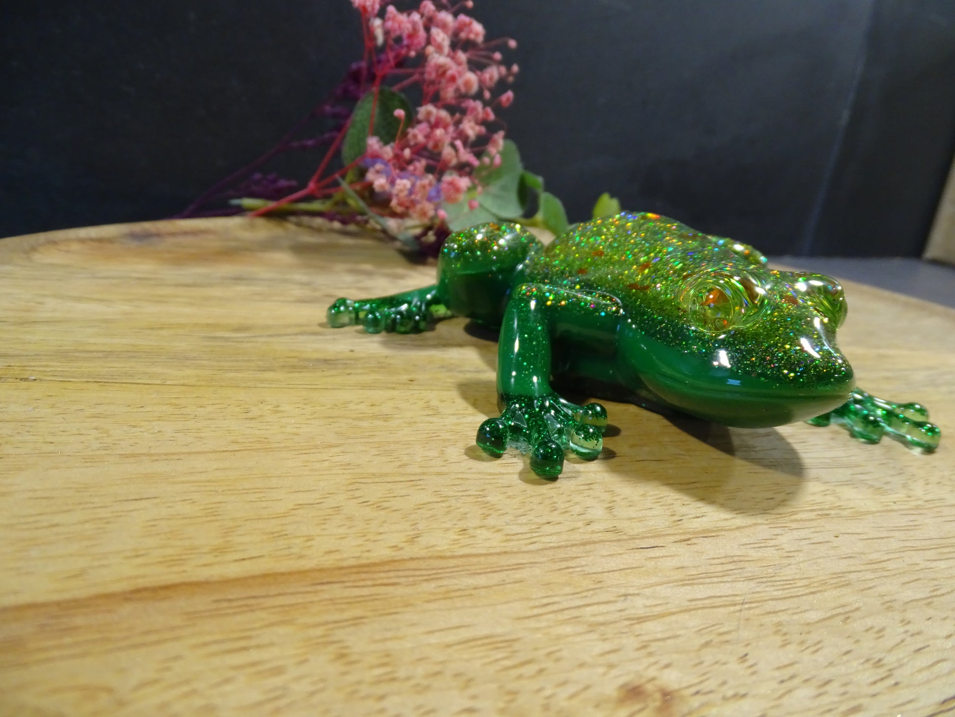 Frog decorative figure made of synthetic resin | Handmade | Glitter and color selectable