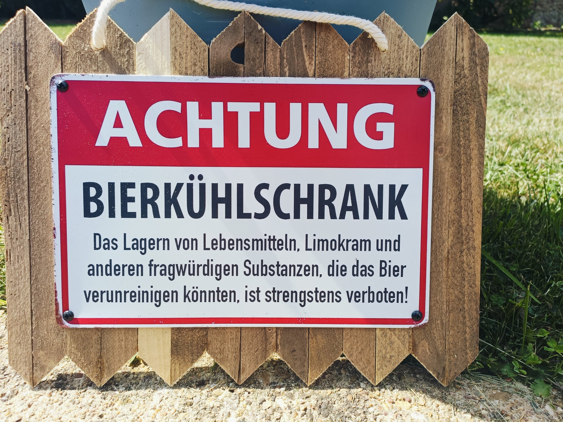 Ein Muss für jeden Bierliebhaber: Dieses Blechschild mit dem humorvollen Spruch „Bierkühlschrank – Das Lagern von Limokram, der das Bier verunreinigen könnte, ist strengstens verboten!“ bringt sofort Klarheit ins Kühlschrank-Regal. Perfekt für Partykeller, Bar oder Gartenhaus.