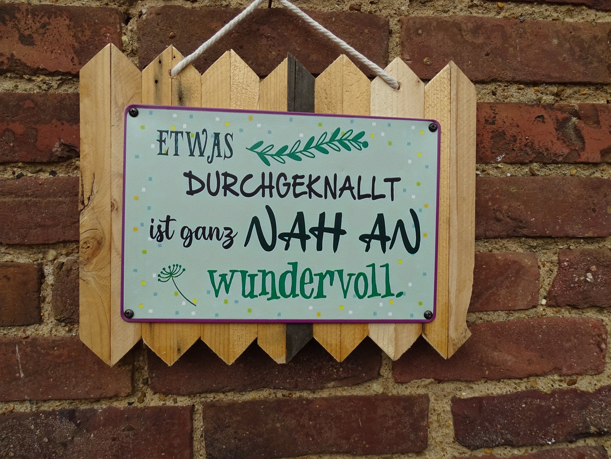Blechschild " Etwas Durchgeknallt ist Nah an Wundervoll " Handgefertigt auf Altholz