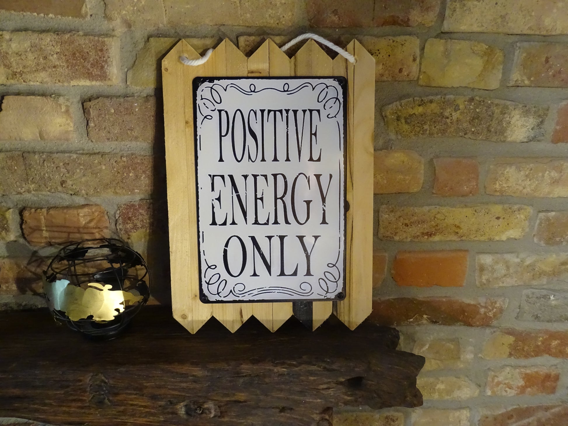 Blechschild Positive Engergy Only - handgemacht auf Altholz