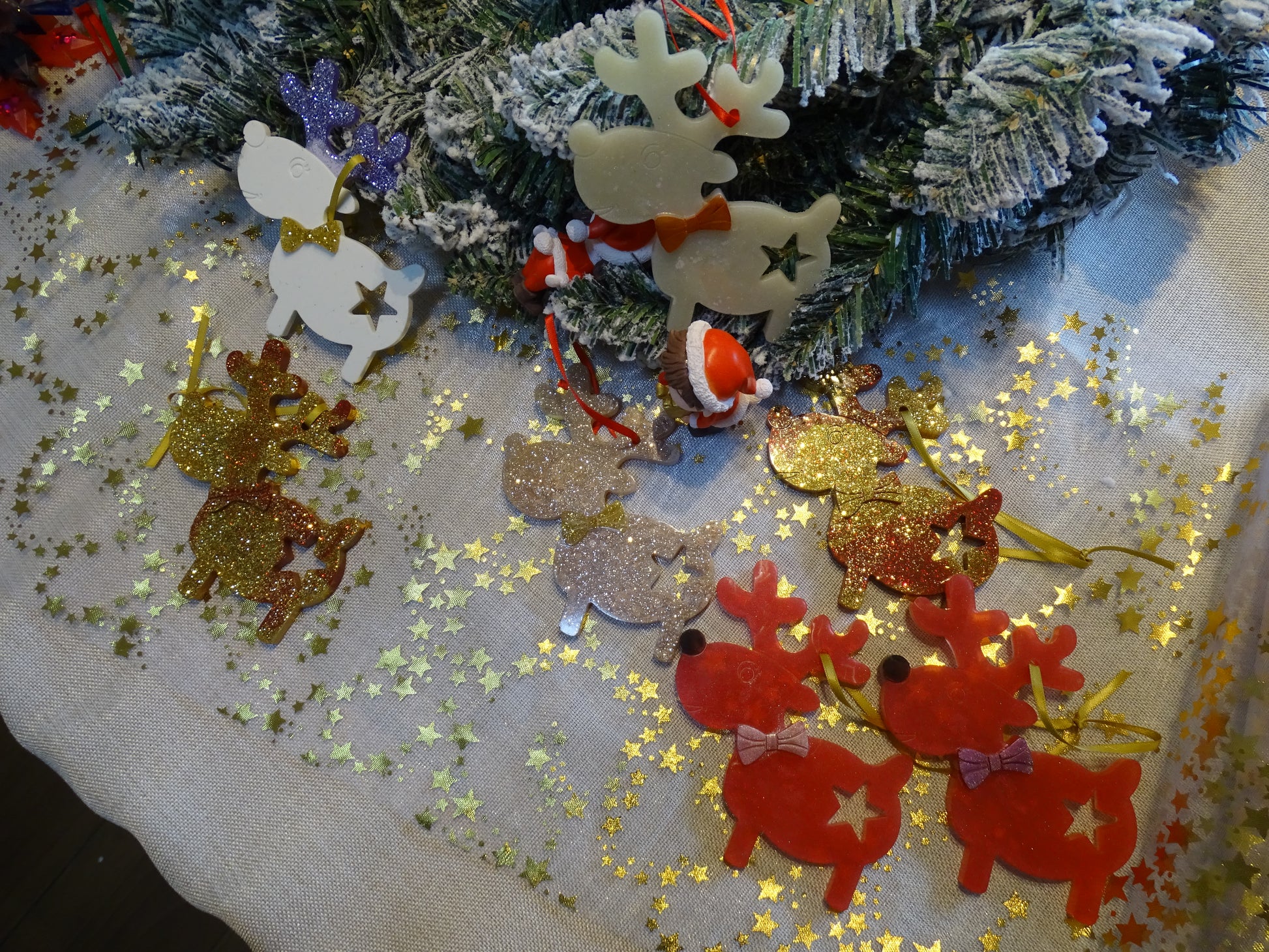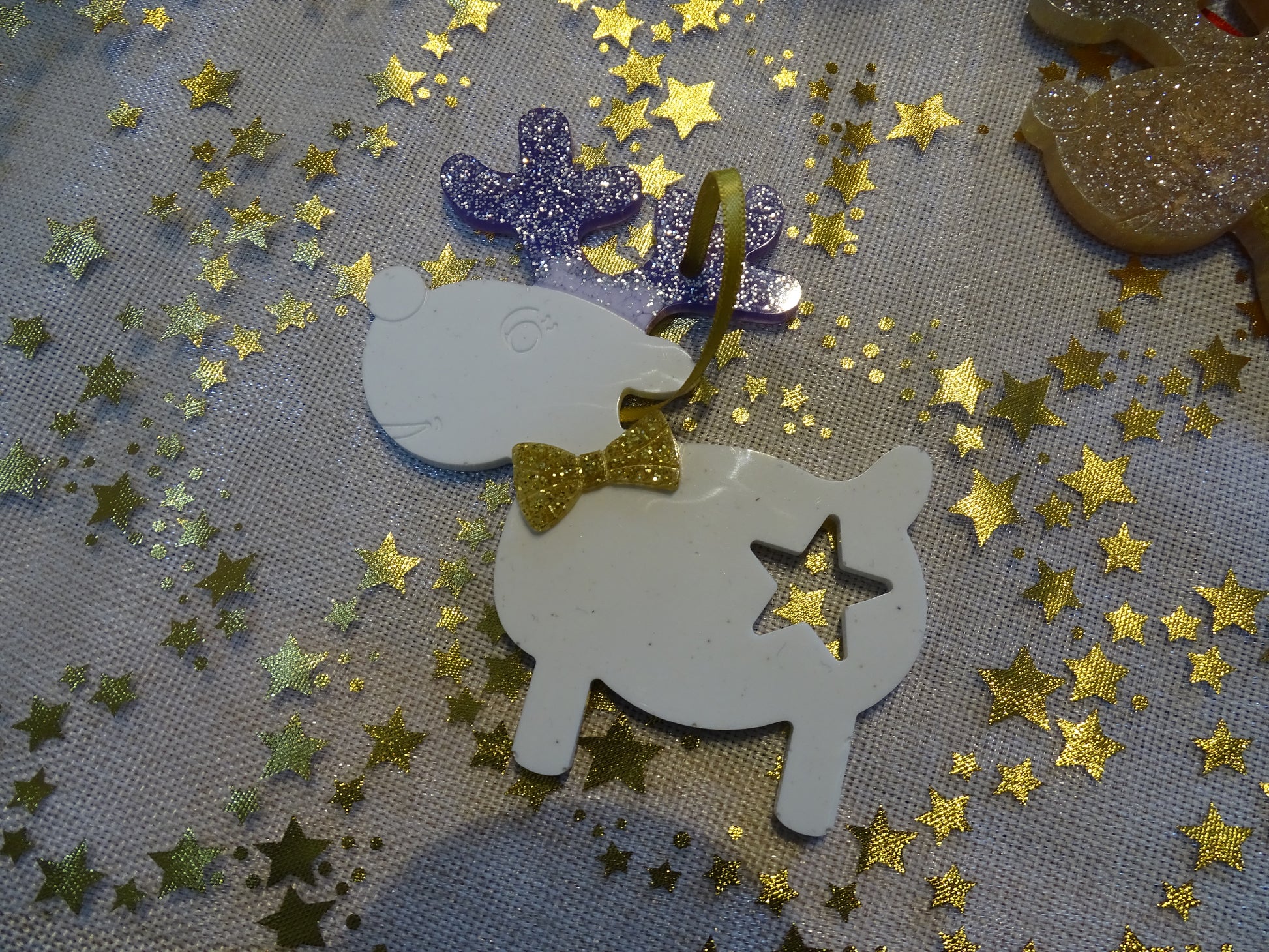 Großer Rentier-Baumschmuck – Weihnachtsanhänger in Gold, Silber, Rot & Champagner-Beige und weiß-lila