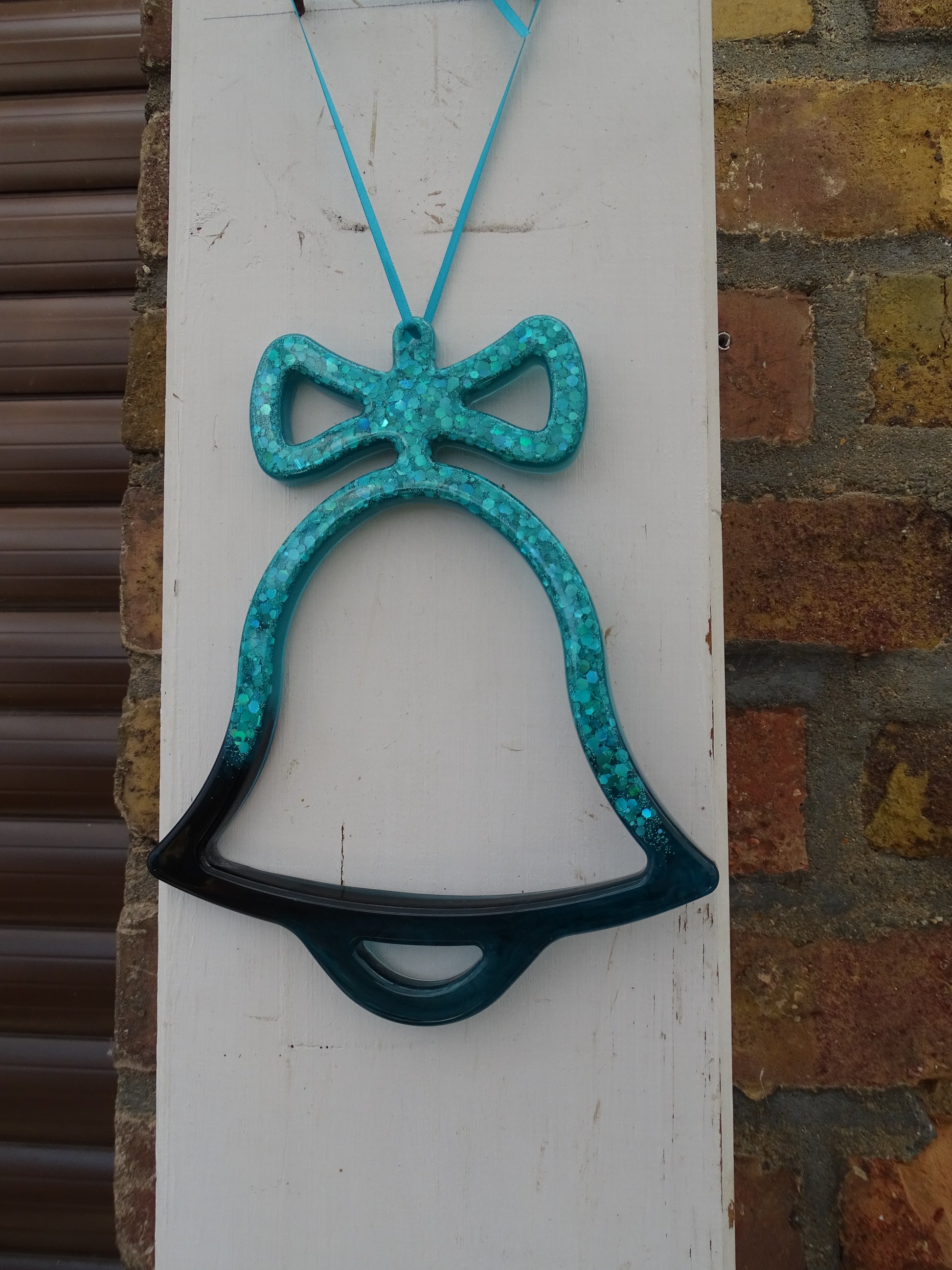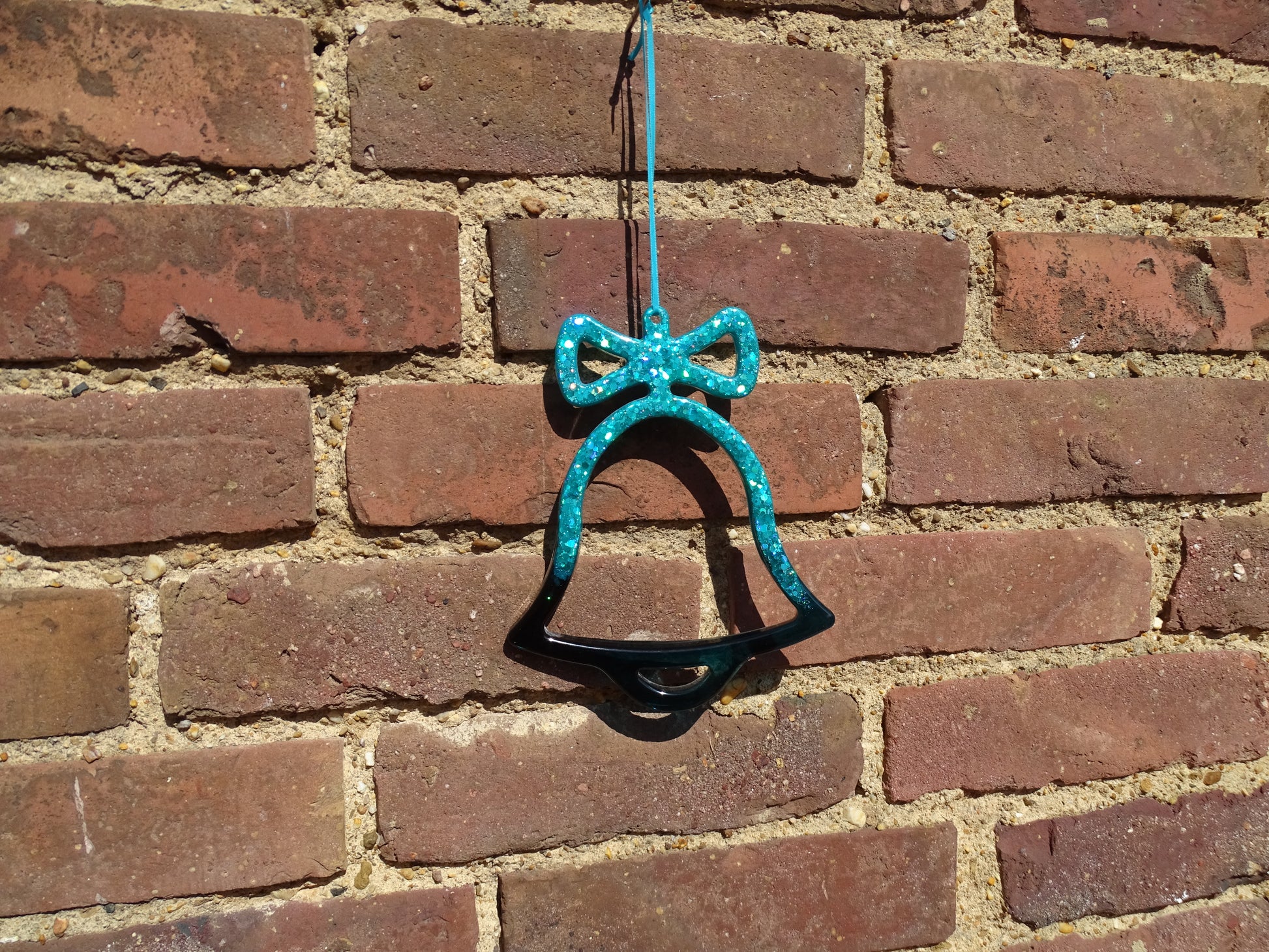 Weihnachtsglocke - Fensterschmuck , Türdekoration Türkis/Petrol